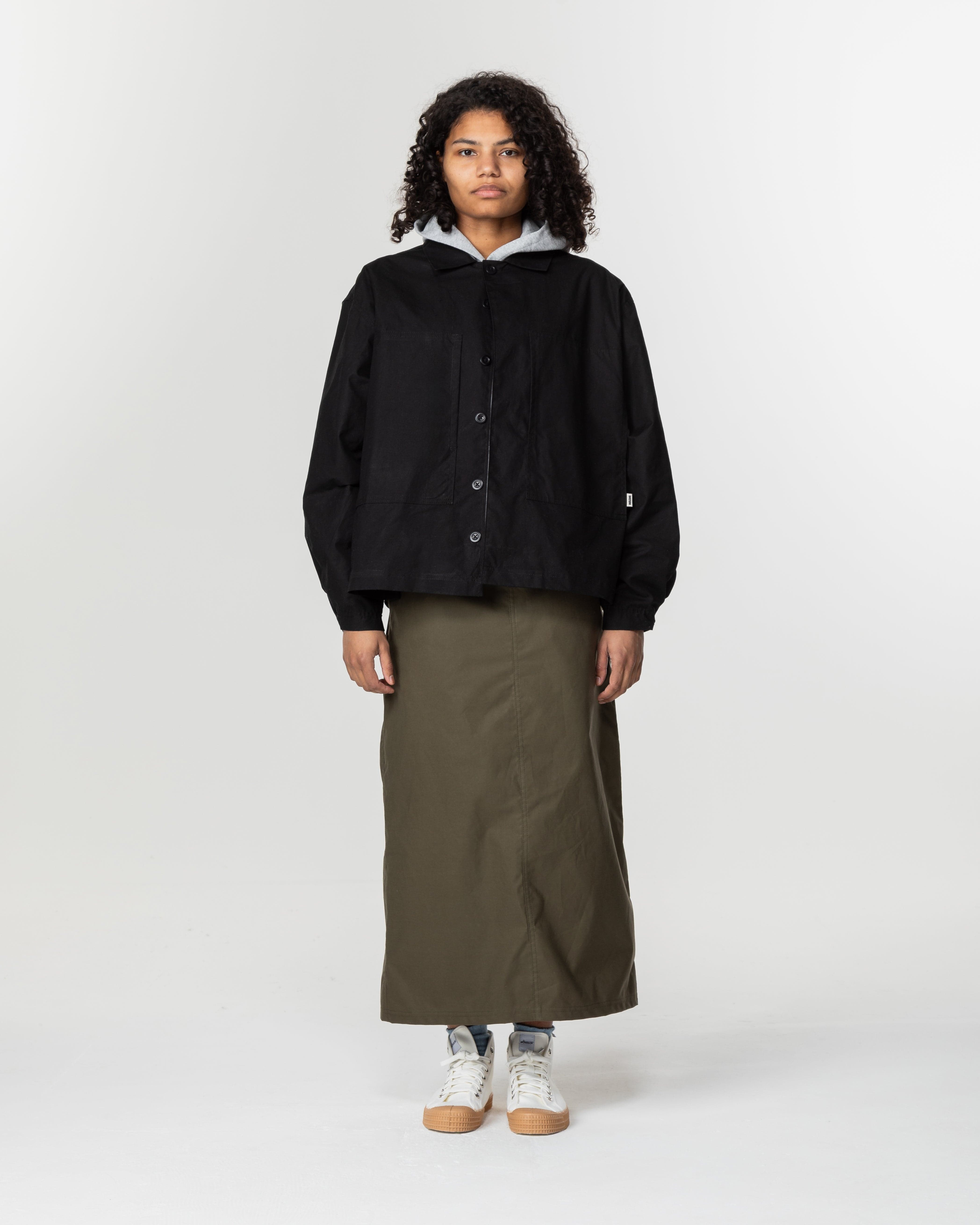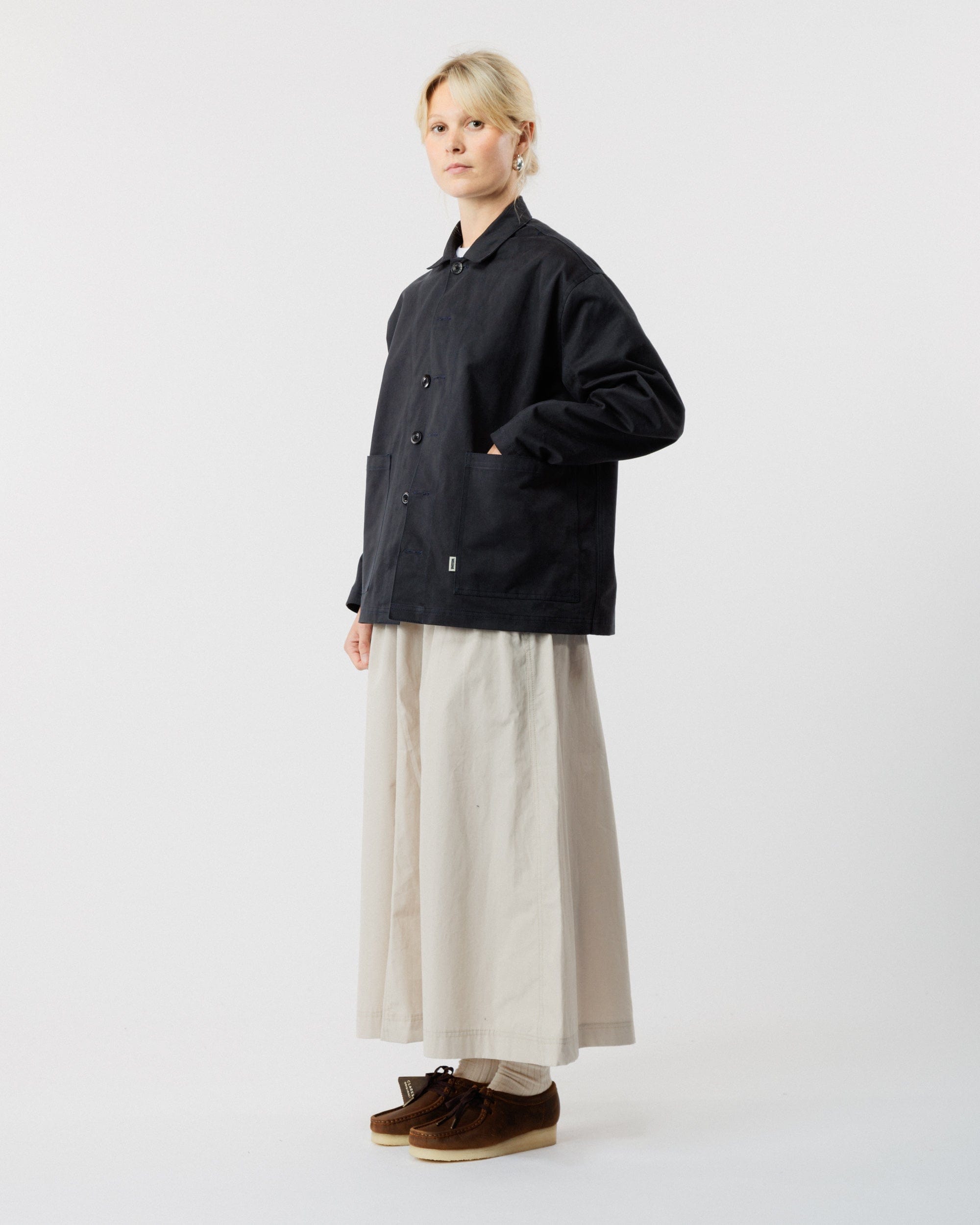 GREAT skirt! Love the heavy cotton. It feels very high quality, and it's a versatile addition to my wardrobe - simple, flexible and I expect to get a lot of wear out of it. I've been wearing it with loafers & socks, and I expect to pair it with boots as the weather gets colder. I was a little concerned about the sizing as I am at the top of the M size range, but it fits comfortably with the elasticated waistband. I'm 5'5" but I don't feel swamped in it, it hits just above my ankle.