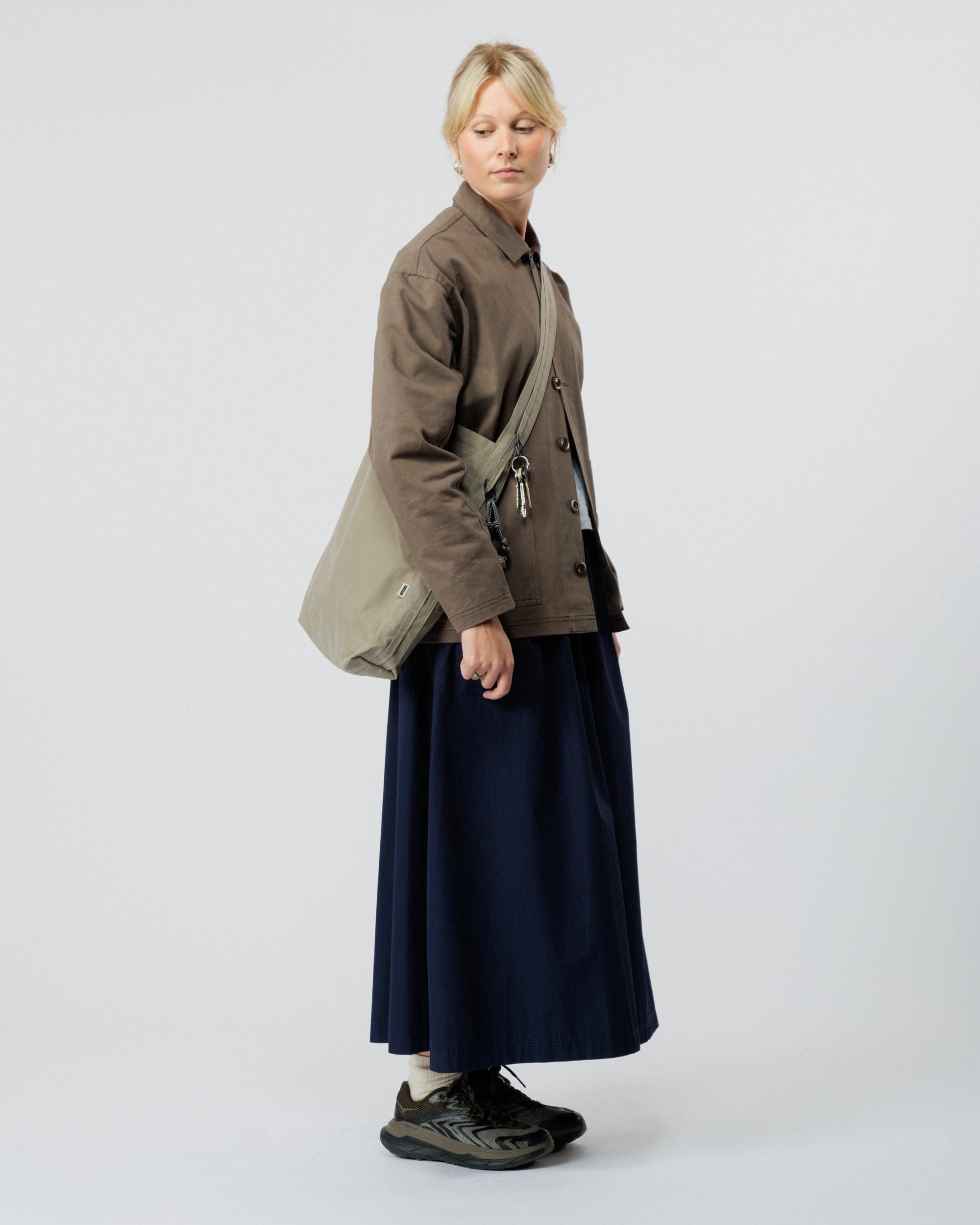 GREAT skirt! Love the heavy cotton. It feels very high quality, and it's a versatile addition to my wardrobe - simple, flexible and I expect to get a lot of wear out of it. I've been wearing it with loafers & socks, and I expect to pair it with boots as the weather gets colder. I was a little concerned about the sizing as I am at the top of the M size range, but it fits comfortably with the elasticated waistband. I'm 5'5" but I don't feel swamped in it, it hits just above my ankle.