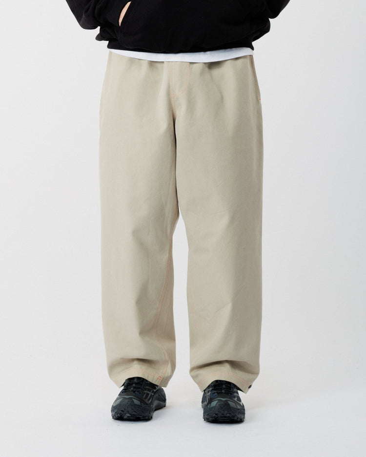 Our best-selling Zama Pants are back with a fresh update - this time in a clean stone canvas with bold red contrast stitching for a striking twist on a WAWWA classic. Same signature fit, same durability, now with detailing that makes them stand out.