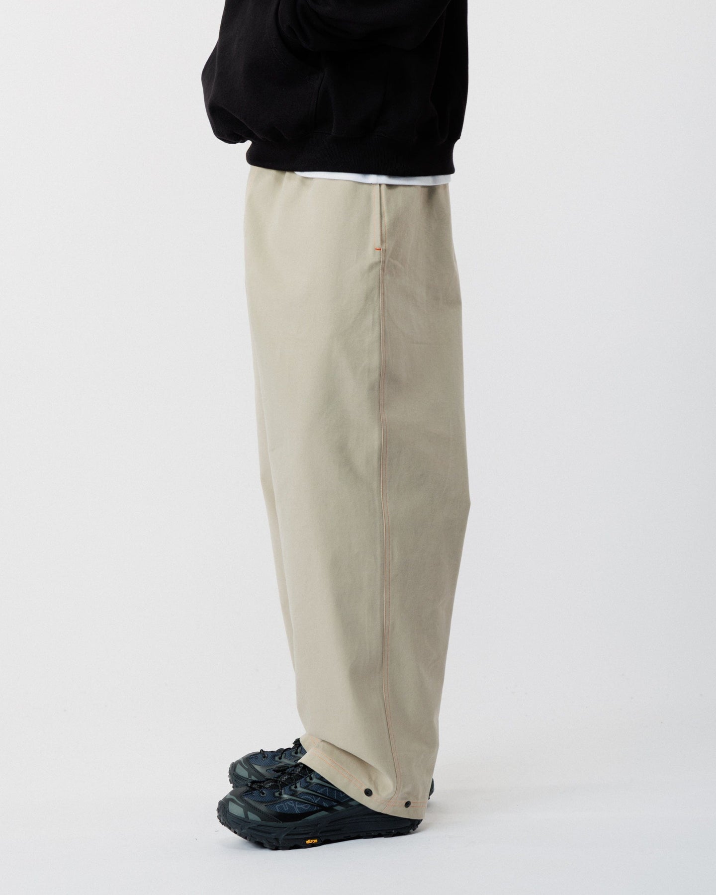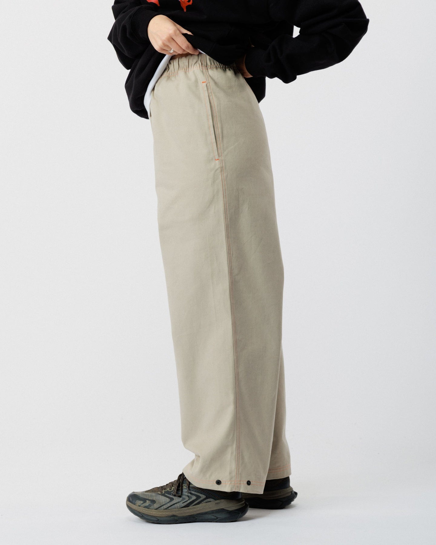 Cut and sewn in our Manchester workshop, the Contrast Stitch Zama Pants are crafted from 100% organic cotton canvas - breathable, hardwearing, and made to move with you. The wide-leg silhouette and elasticated waistband deliver all-day comfort, while a reinforced gusset provides extra durability and freedom of movement.