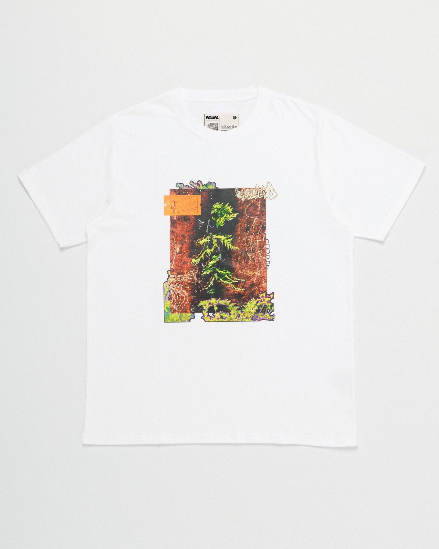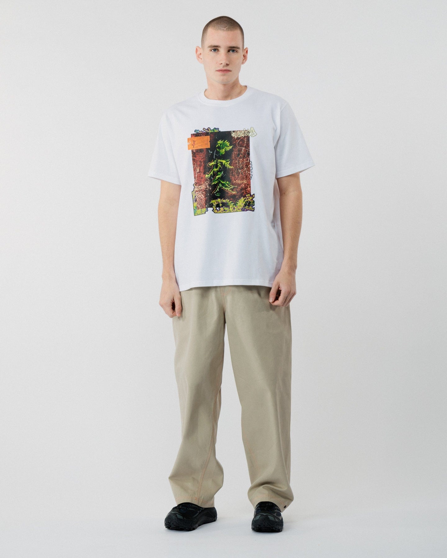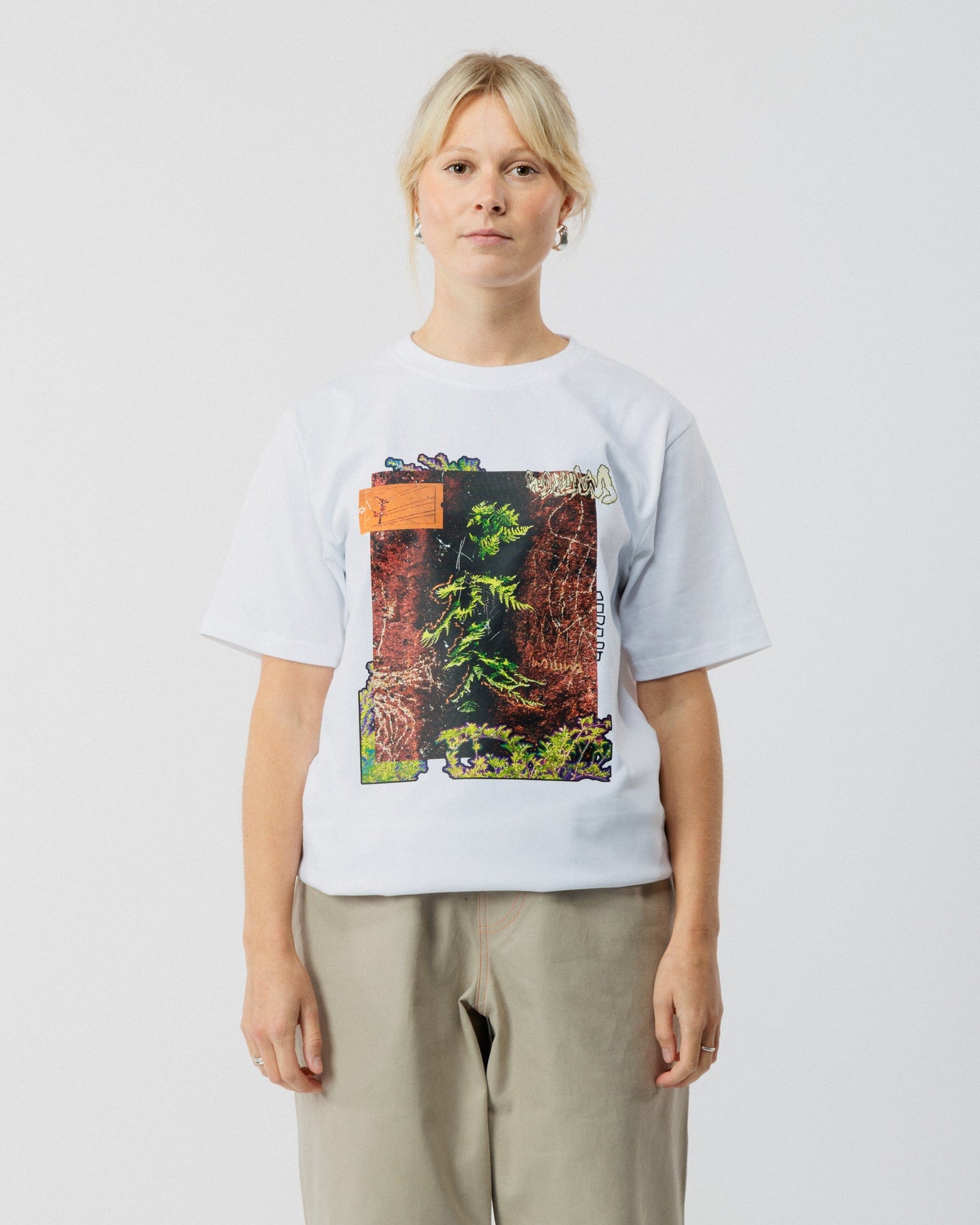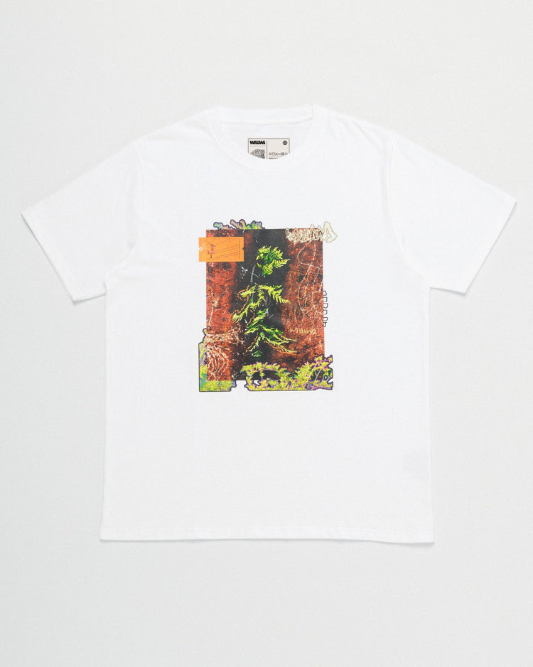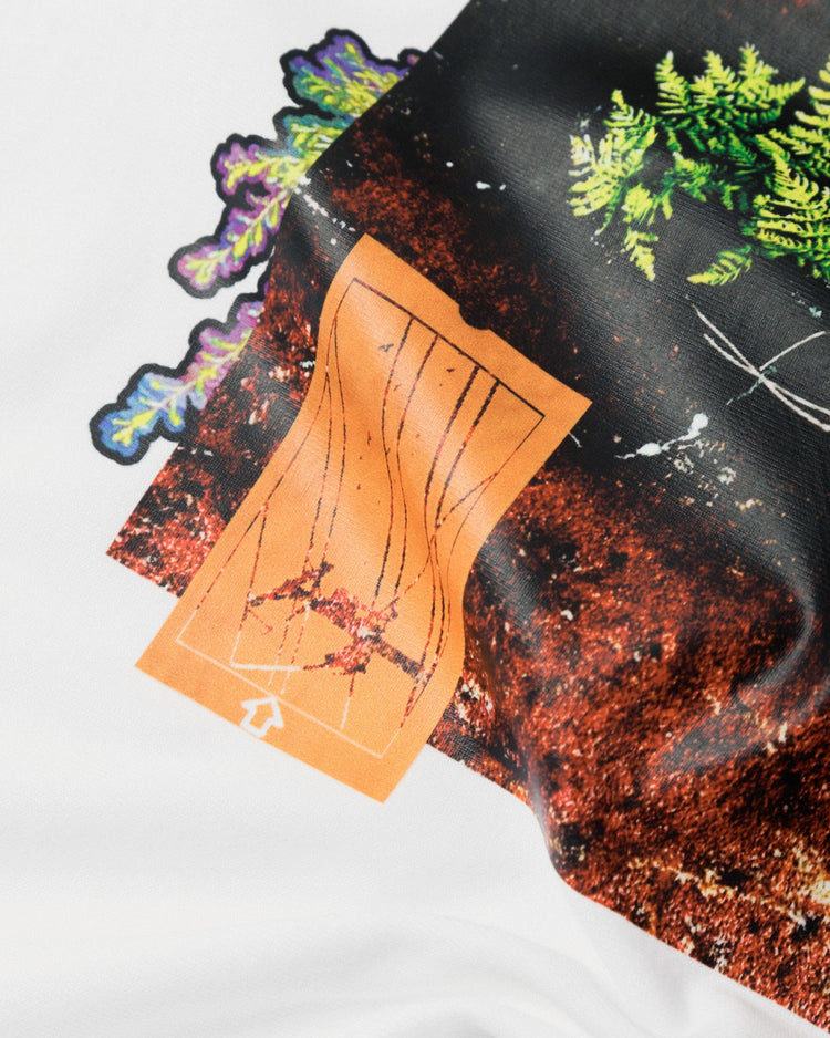 The Westing T-shirt in White celebrates the quiet resilience of the British landscape - ferns growing through stone walls in the Peak District, captured in a unique hand-drawn overlay on documentary photography. This combination of artwork and photographic detail creates a striking, textured design that brings the wild edges of the UK into your wardrobe.