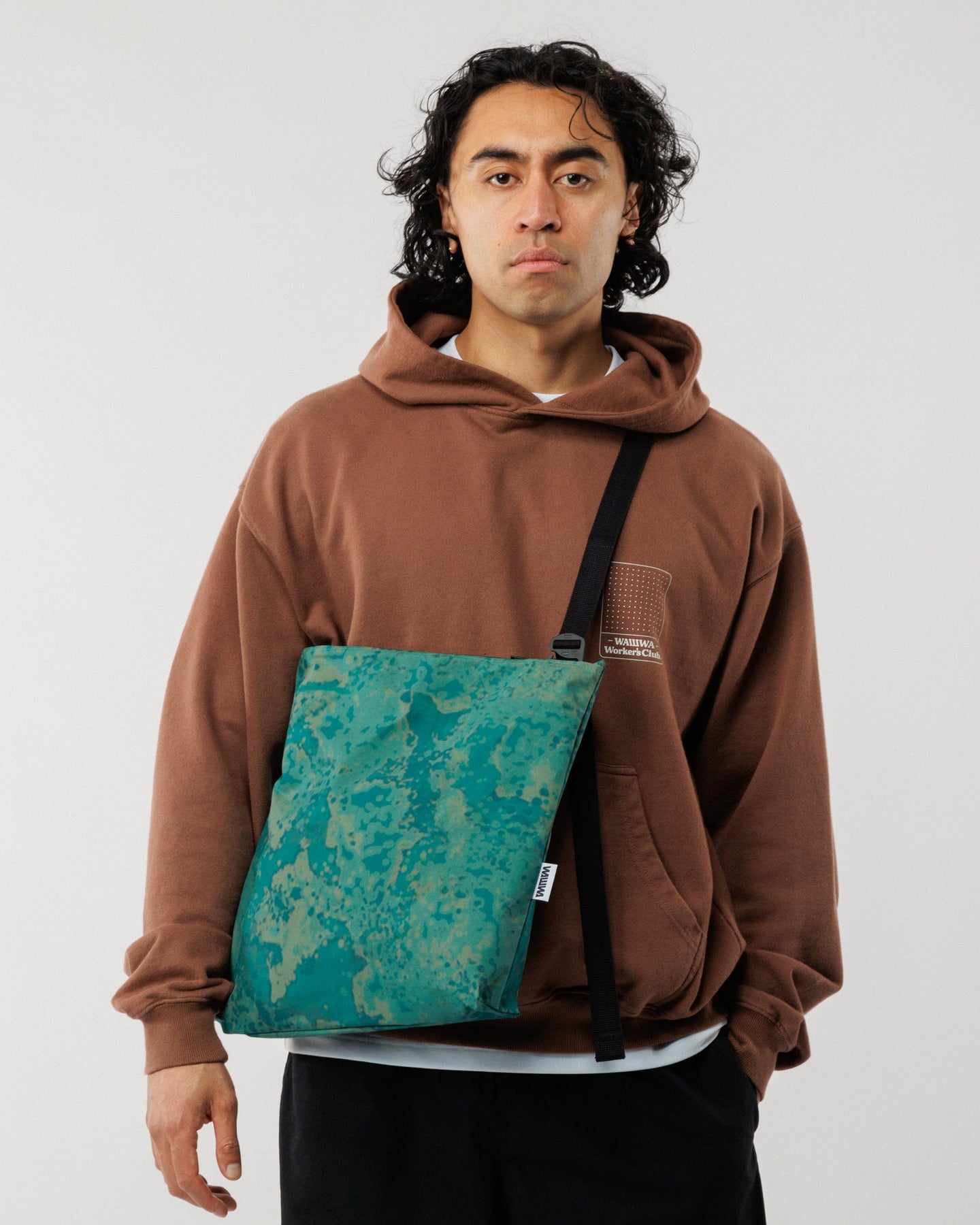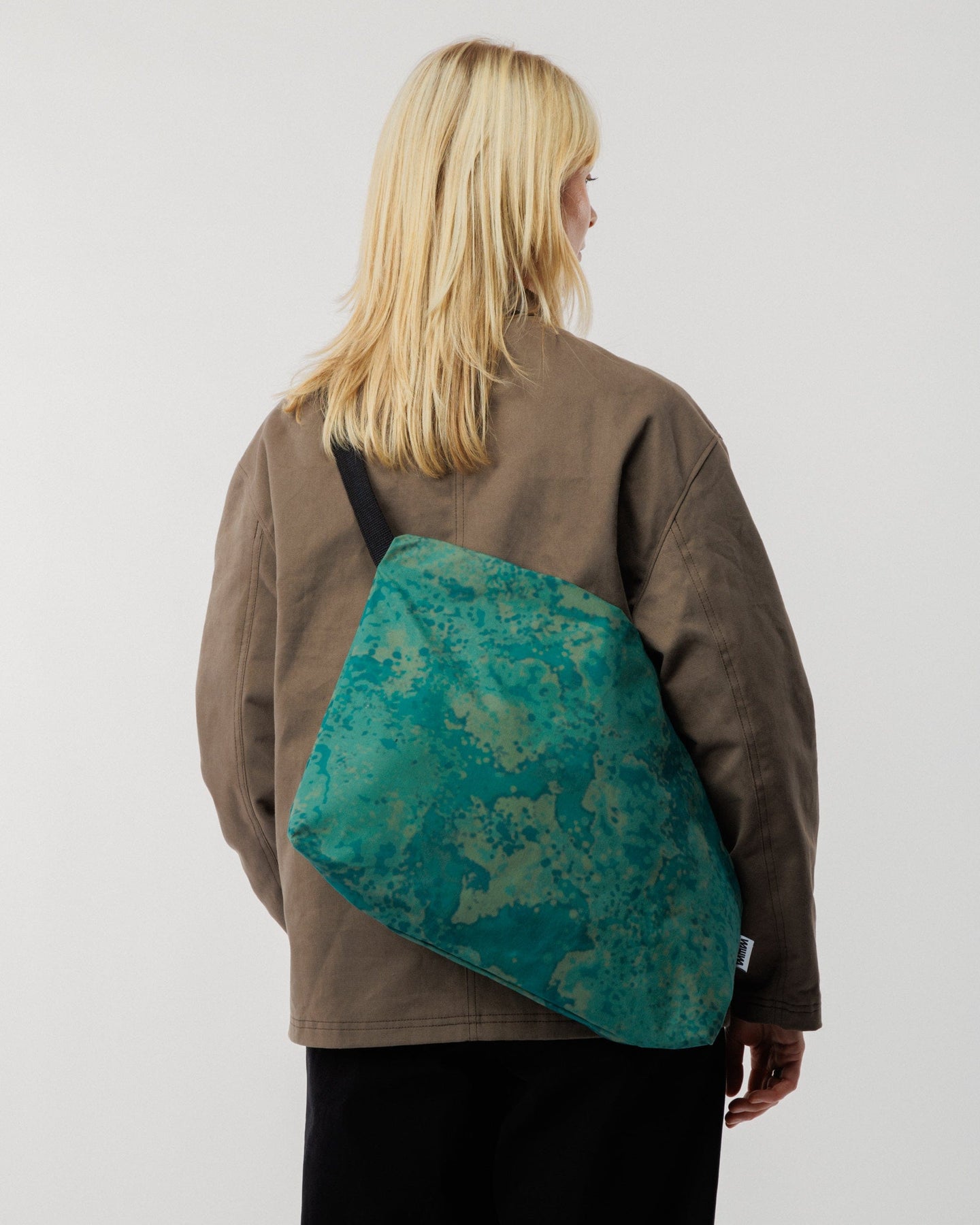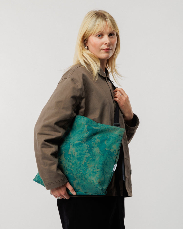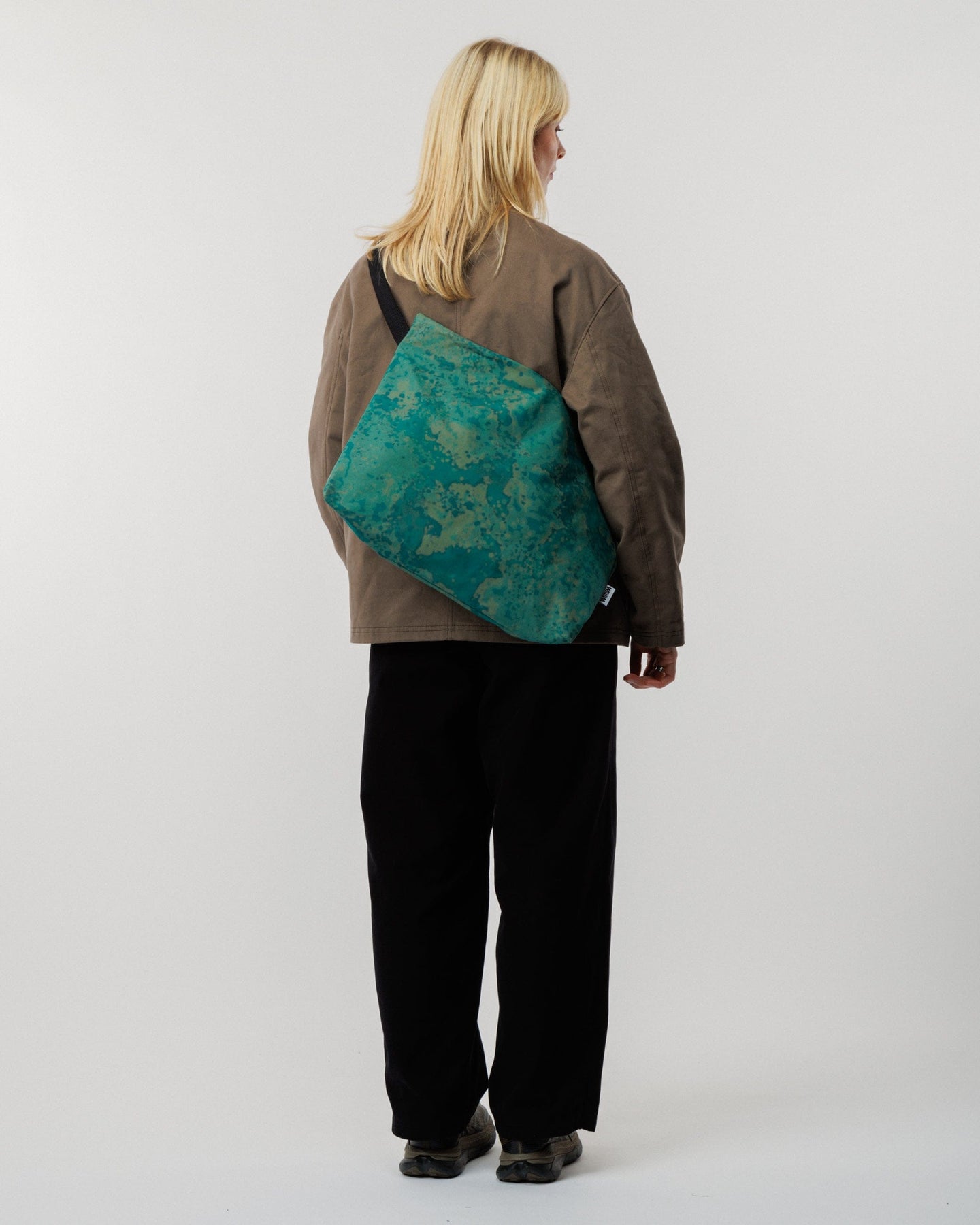 Our Water-Resistant Messenger Bag has been upgraded in a Limited Edition Blue Ink Print. Made from dry wax organic cotton in a subtle camouflage-inspired pattern - reminiscent of ink dispersing through water or lichen spreading across stone - this messenger combines practical functionality with a distinctive, textured aesthetic.