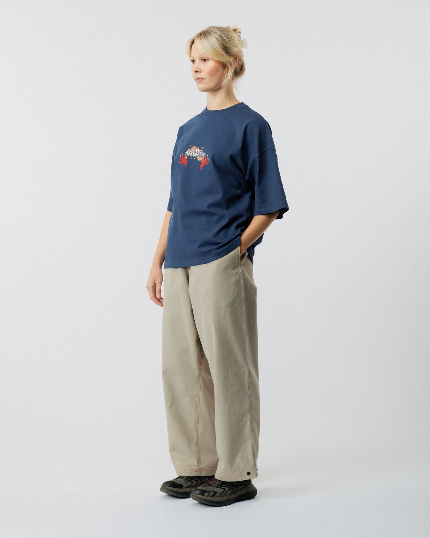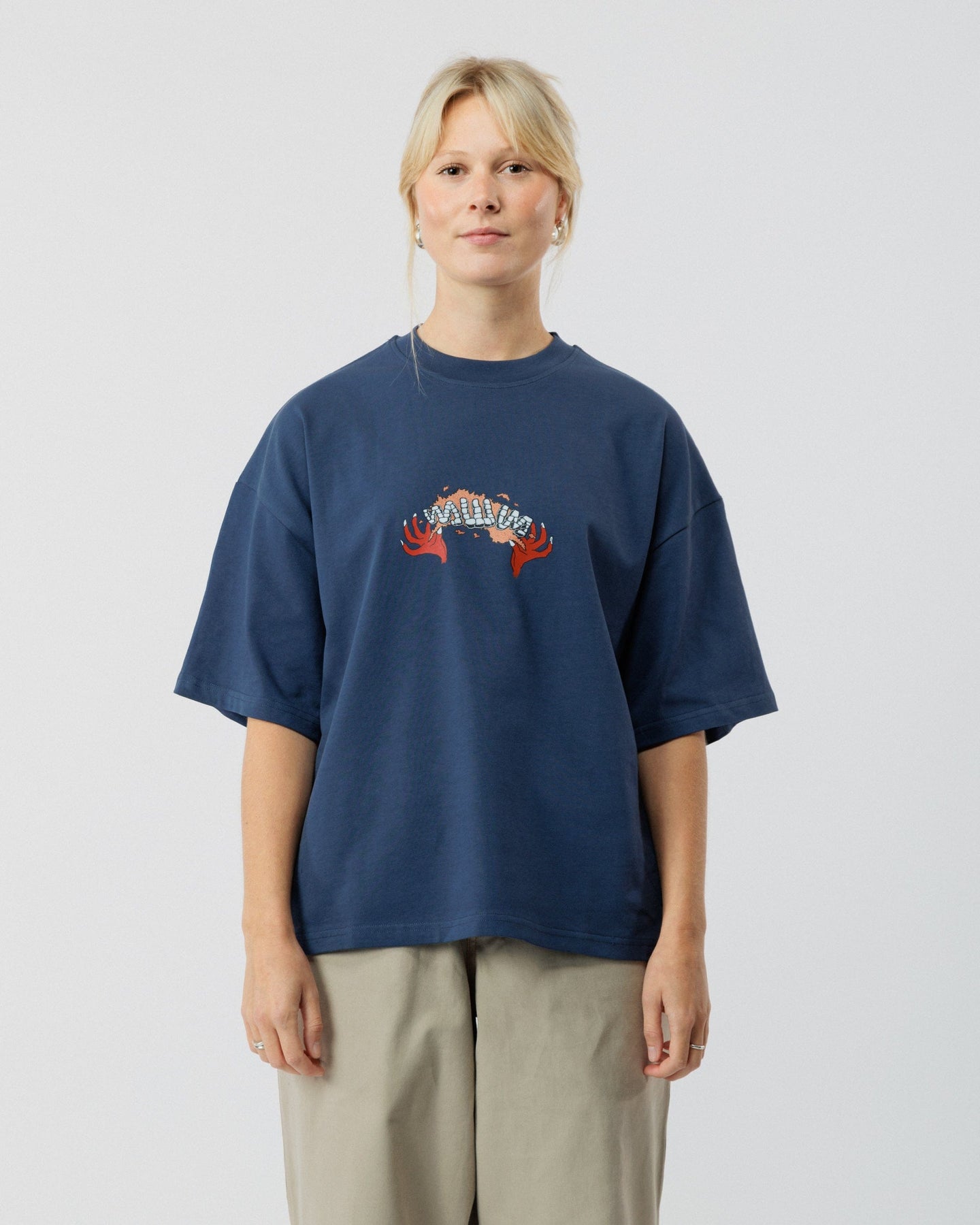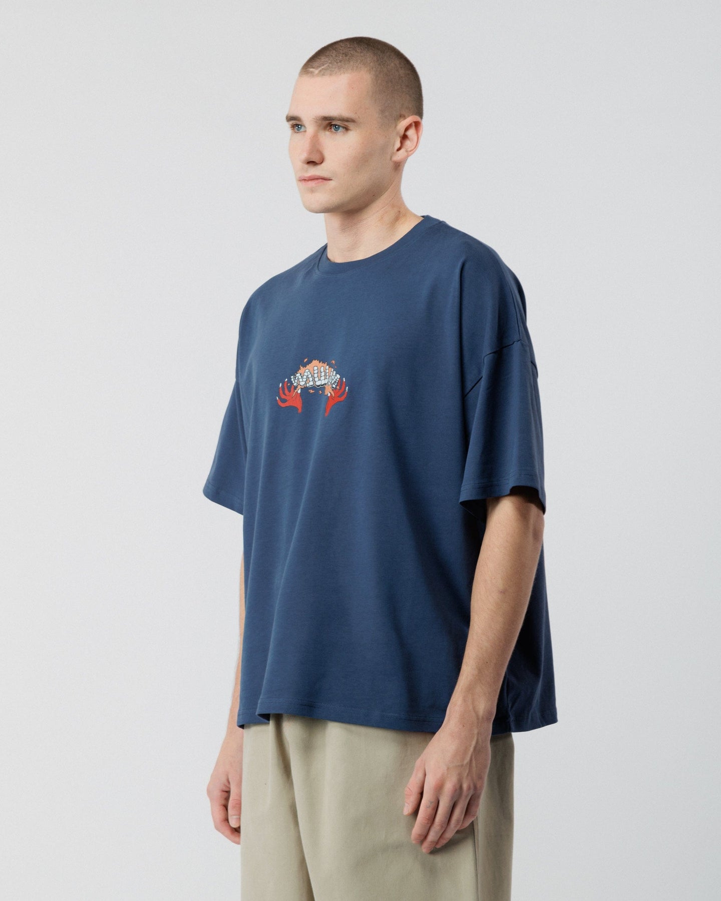 The Caster Box Tee in Navy is crafted from 100% Organic Cotton and individually printed using state-of-the-art technology that reduces waste. It comes in a custom boxy fit and with a sturdy 240 GSM weight, giving it a high-quality heavyweight feel.