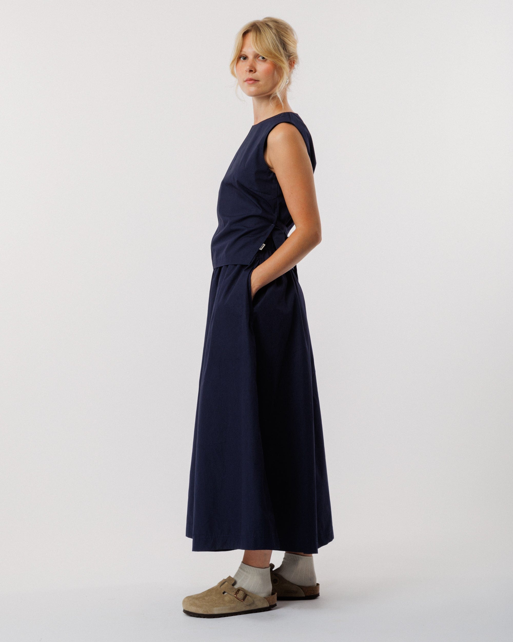 GREAT skirt! Love the heavy cotton. It feels very high quality, and it's a versatile addition to my wardrobe - simple, flexible and I expect to get a lot of wear out of it. I've been wearing it with loafers & socks, and I expect to pair it with boots as the weather gets colder. I was a little concerned about the sizing as I am at the top of the M size range, but it fits comfortably with the elasticated waistband. I'm 5'5" but I don't feel swamped in it, it hits just above my ankle.