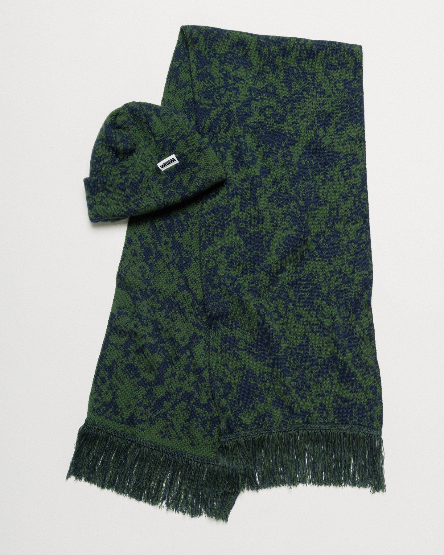Wrap up in timeless comfort with the cosy Barley Hat & Scarf Set in dark green/navy, crafted from 100% soft, breathable cotton just up the road from our Manchester workshop. Designed to be worn together or separately, the set showcases our bespoke Barley jacquard pattern, woven directly into the fabric for a premium finish that’s lightweight, itch-free, and built to last.
