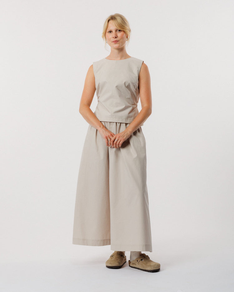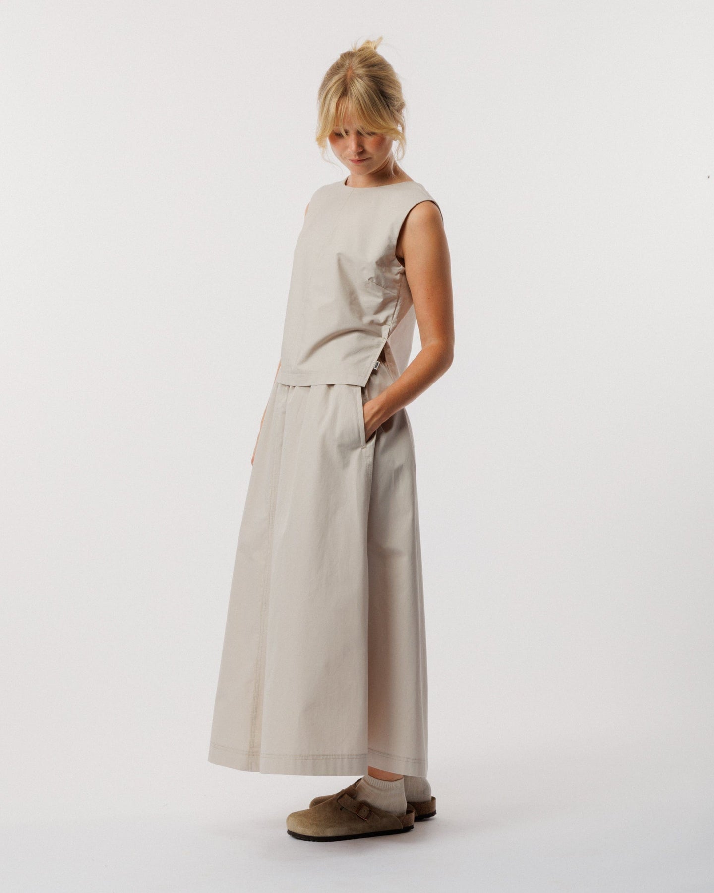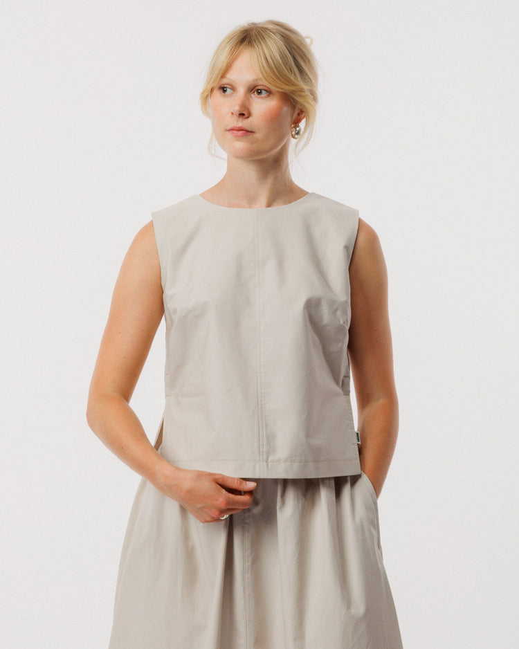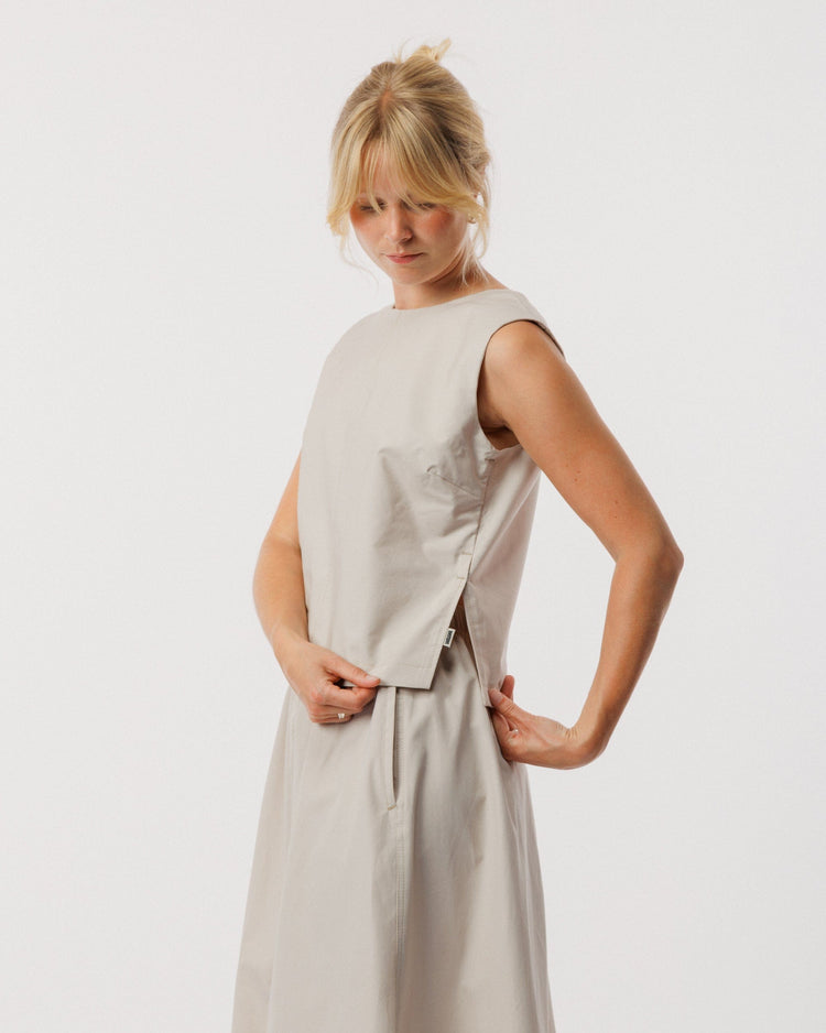 Effortless and versatile, the Amiee Top in stone is your go-to piece for warm-weather comfort with a refined edge. Now reimagined in smooth, lightweight organic cotton poplin, it offers a softer drape while maintaining its relaxed, loose-fitting silhouette. Side openings at the hem add extra ease around the hips for all-day wearability.