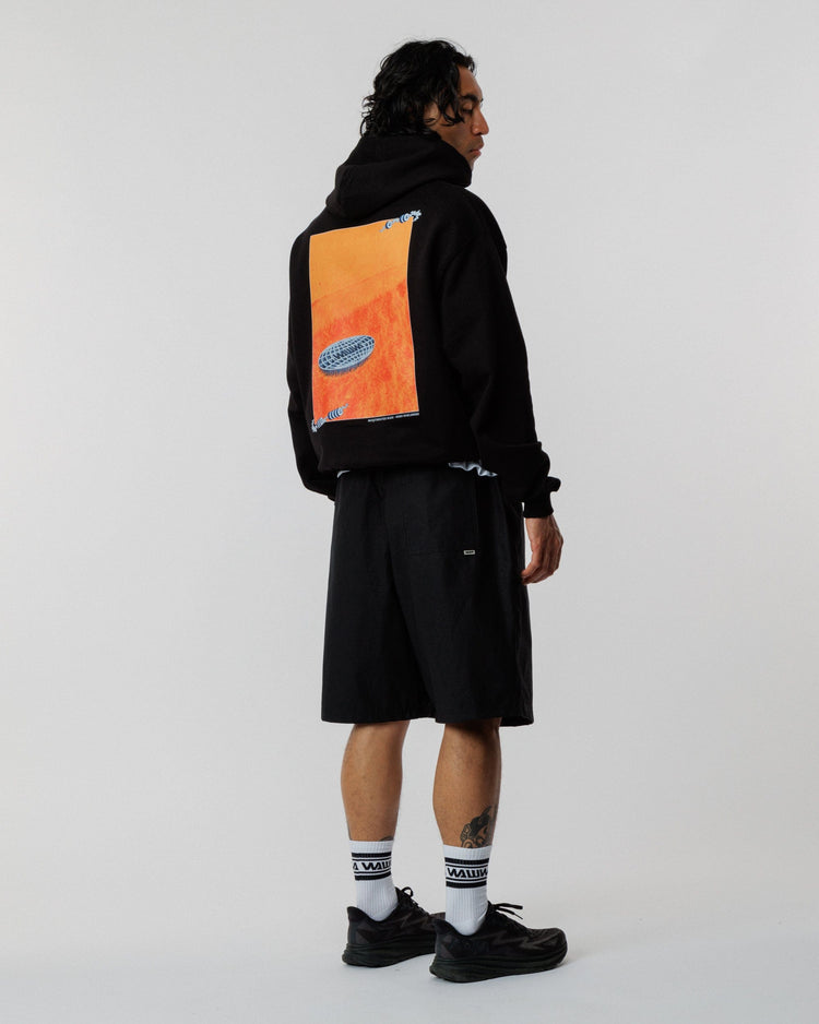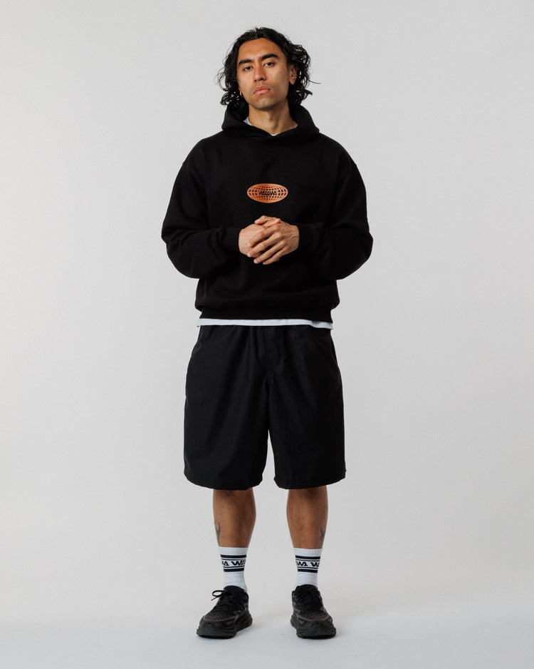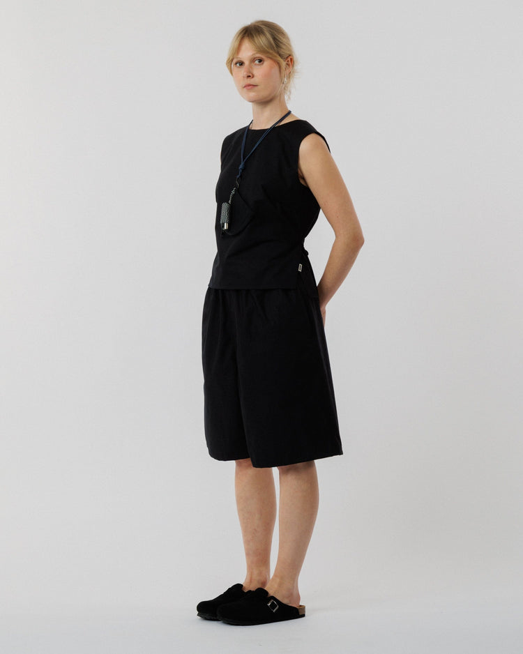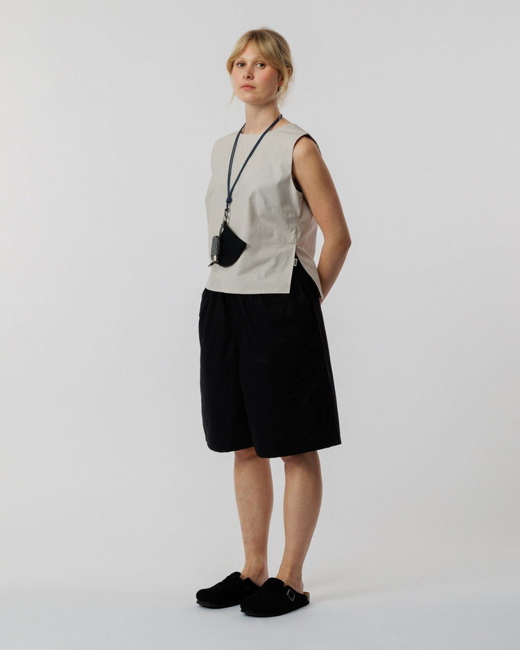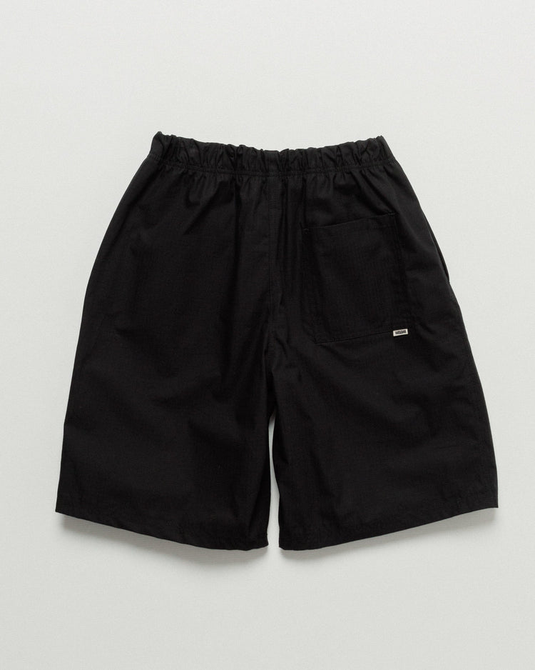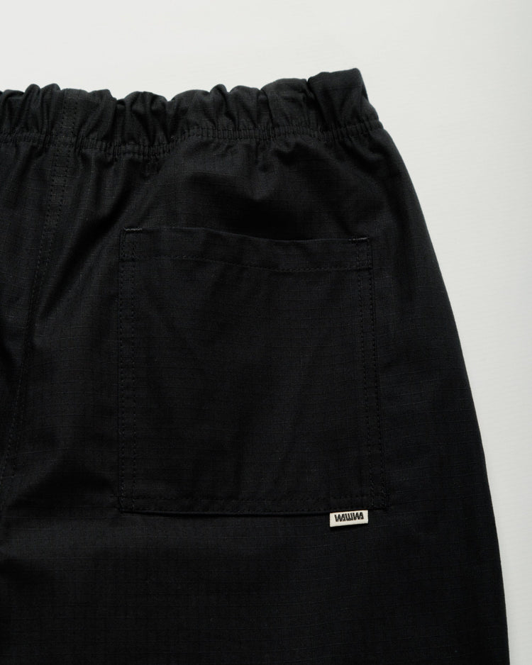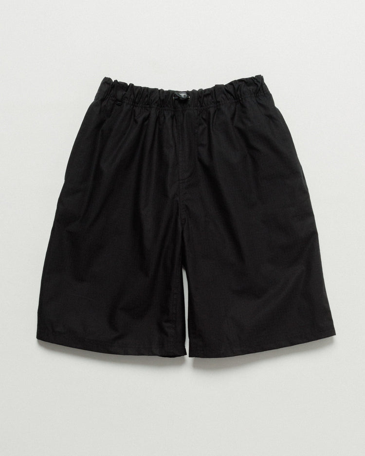 Crafted from lightweight organic ripstop cotton, the Ripstop Zama Shorts in black embody the ultimate workwear fabric philosophy. The innovative grid structure means if they ever tear during your explorations, rips will only travel in straight lines—making repairs simple and extending their lifespan.