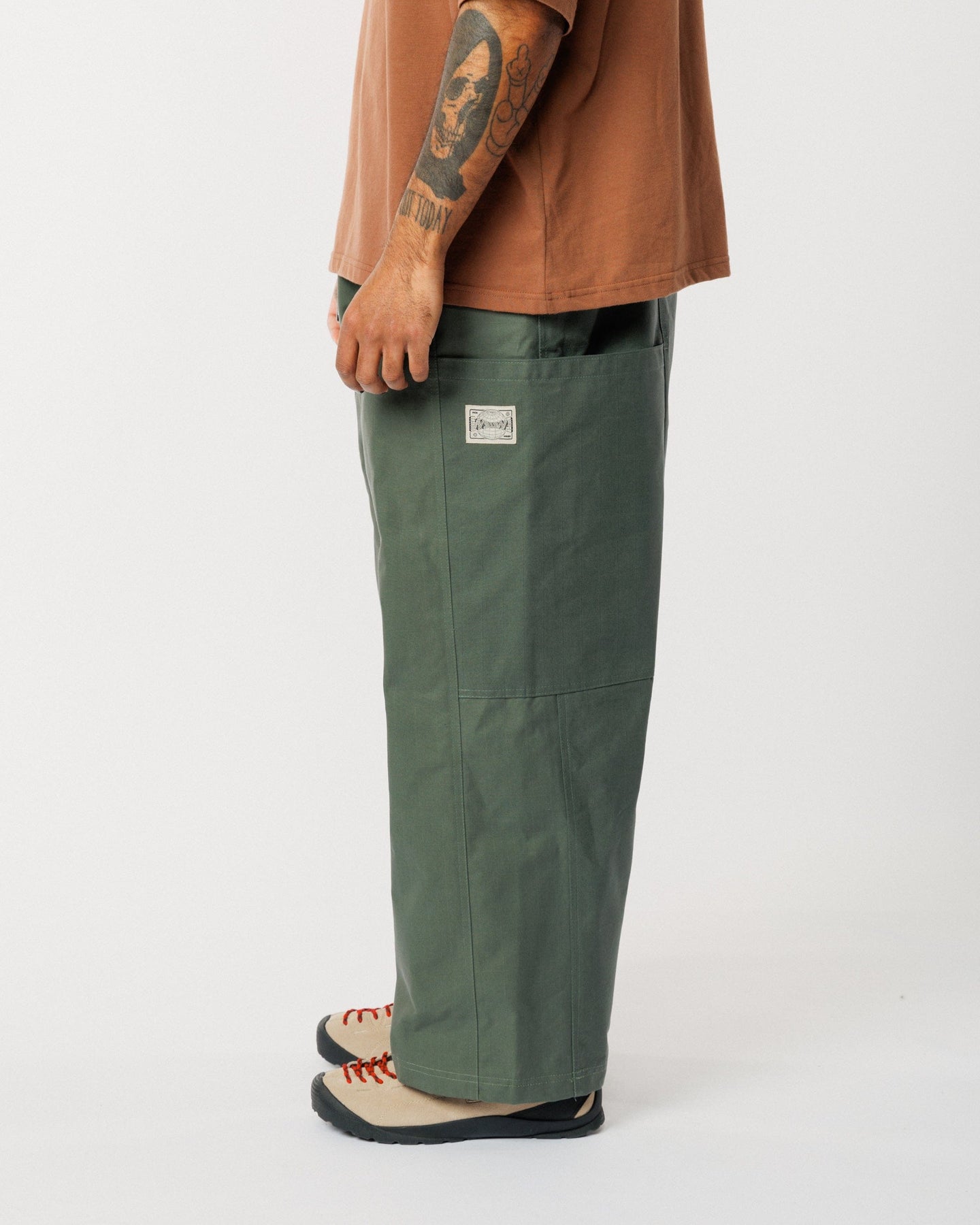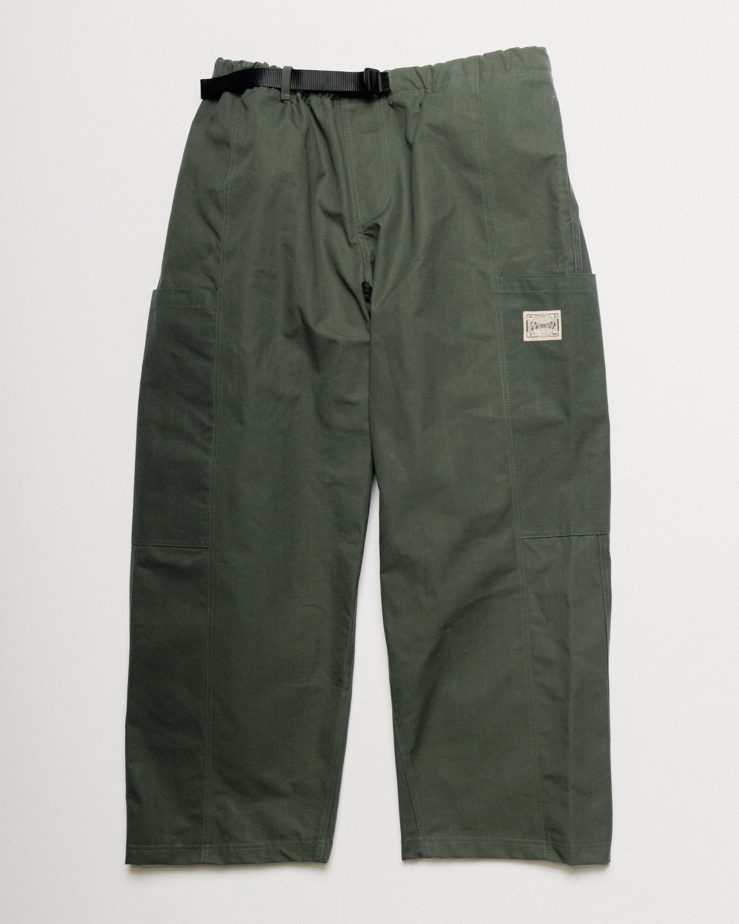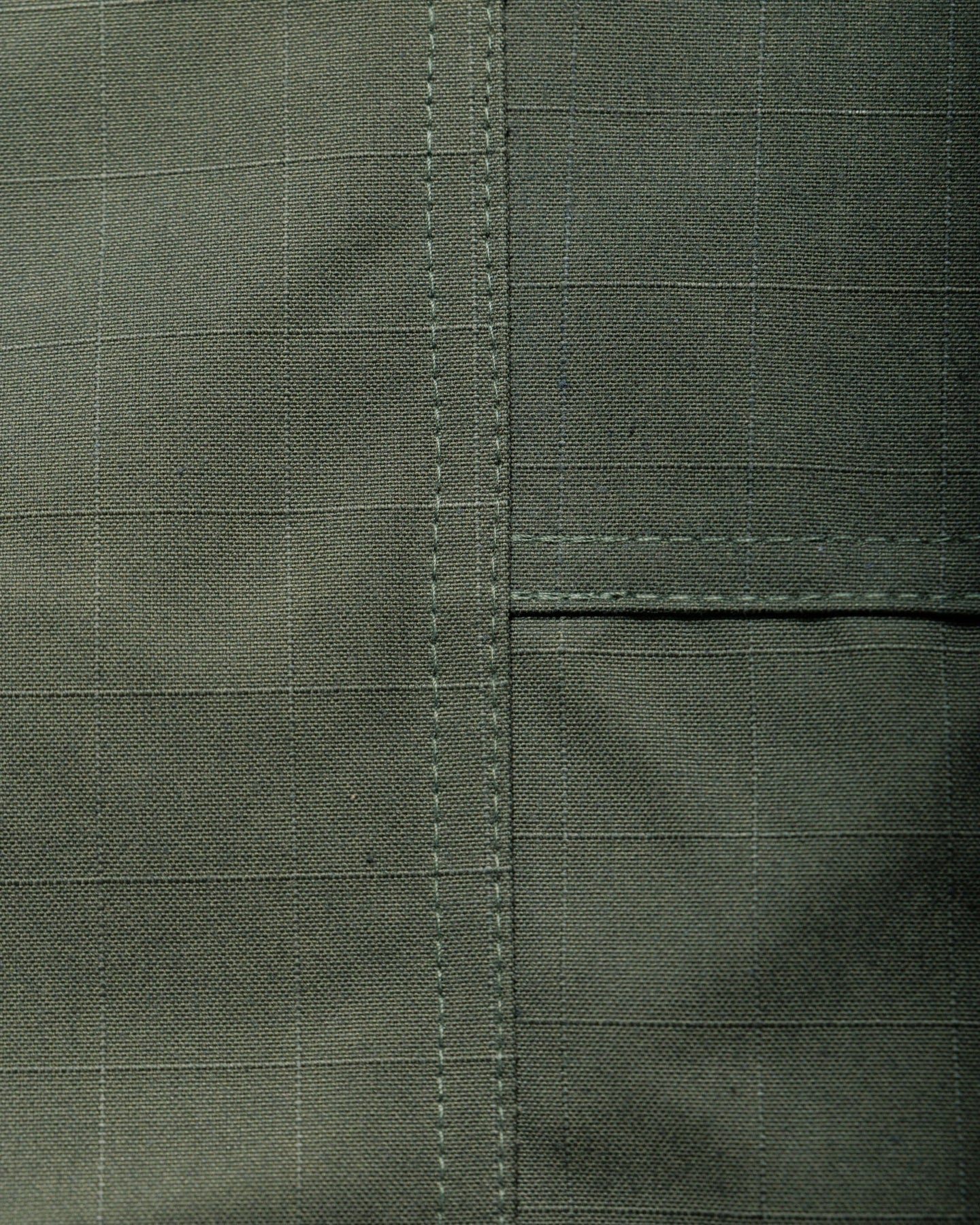 Built for the realities of studio life and beyond, the Water Resistant Studio Pant in mineral green takes our original Studio Pant and pushes it further. Crafted from water-resistant, dry-waxed organic cotton ripstop with a wide grid structure, these trousers offer added protection without sacrificing comfort or mobility. Tough and quietly technical, they’re designed to perform in changeable conditions while maintaining a clean, workwear aesthetic.