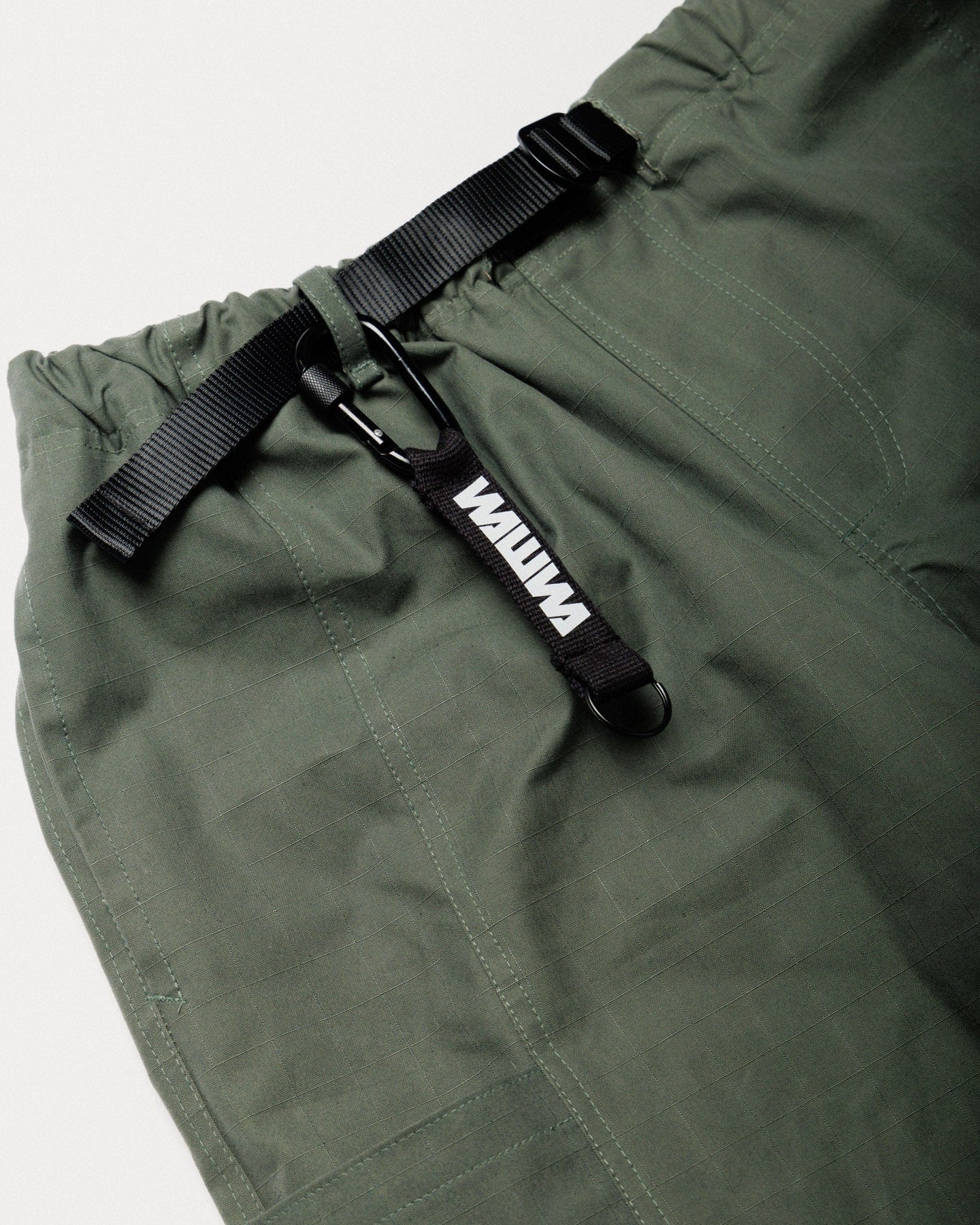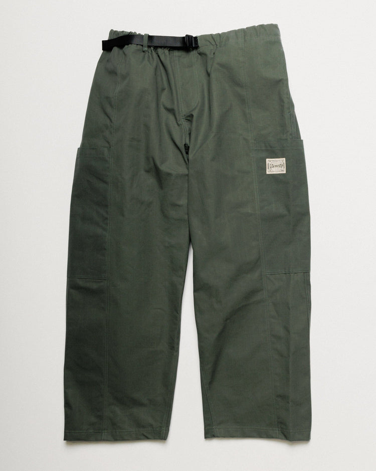 The dry wax finish provides a durable, water-repellent surface, ideal for long days on your feet, outdoor working, or moving between spaces. Large, reinforced side pockets keep essential tools close to hand, while the G-hook belt system delivers a secure, adjustable fit that stays put as you move. A gusseted construction enhances ease of movement, and the relaxed silhouette reflects their professional-grade build. Finished with a woven WAWWA artwork label, these are hard-working pants made to be worn, tested, and relied on.