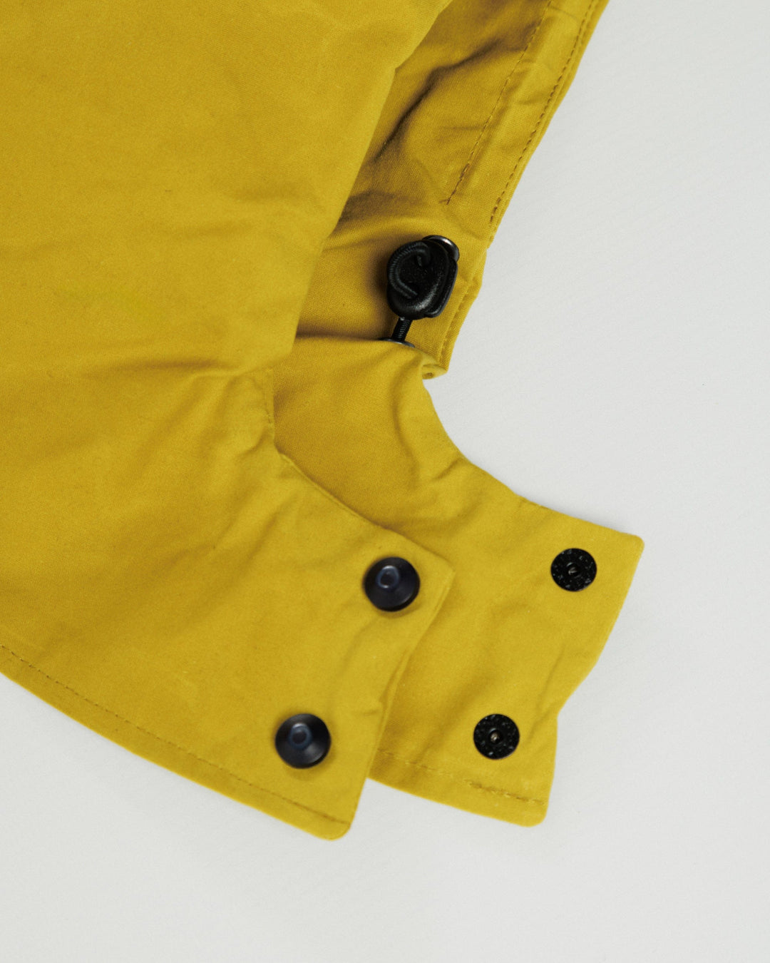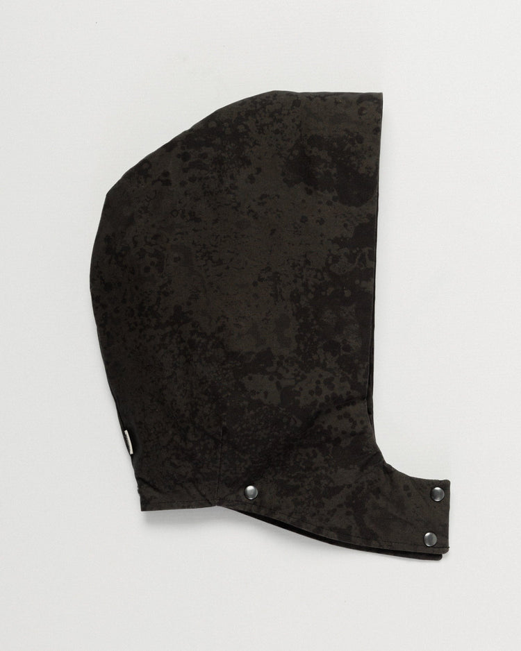 Our Black Ink Detachable Hood is the perfect complement to your Nell Jacket, combining functionality with sophisticated design. Crafted from the same premium Scottish dry-waxed cotton as the jacket, it ensures consistent protection and style. The innovative tyre panel design and double-layered construction offer superior coverage, while multiple adjustment points allow for a customized fit around your face. Attaches seamlessly to your Nell Jacket with discrete poppers.