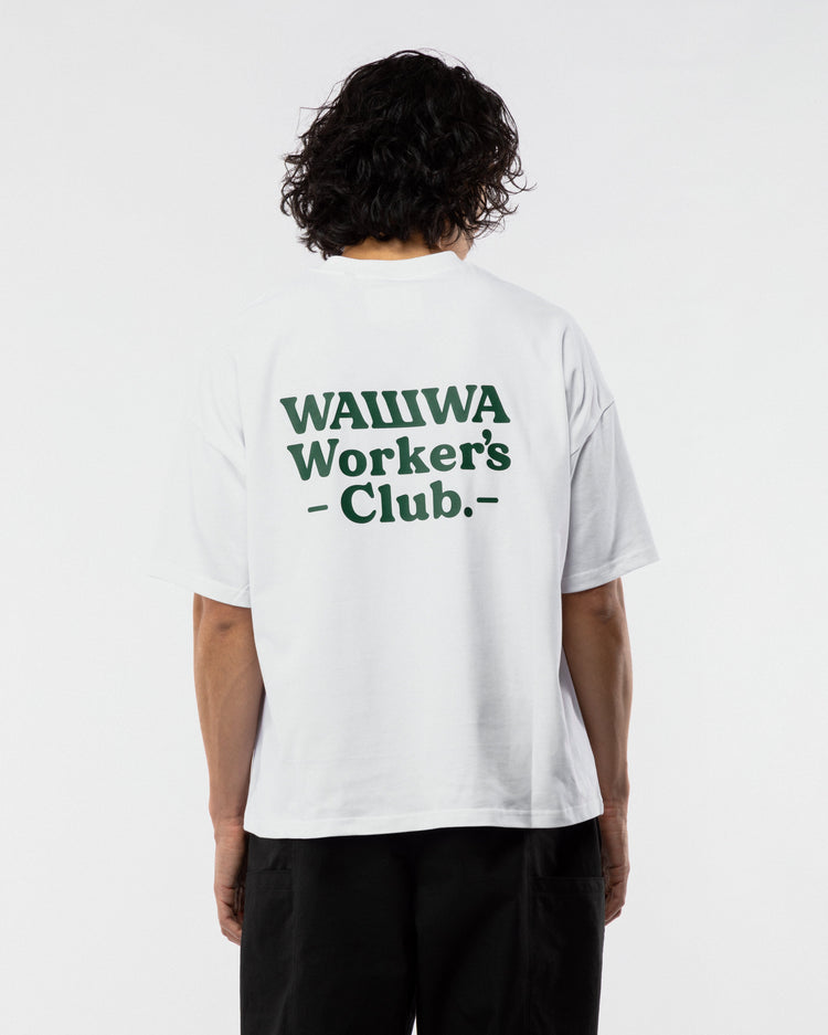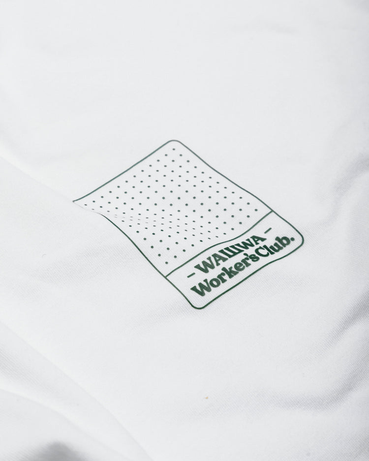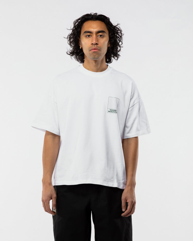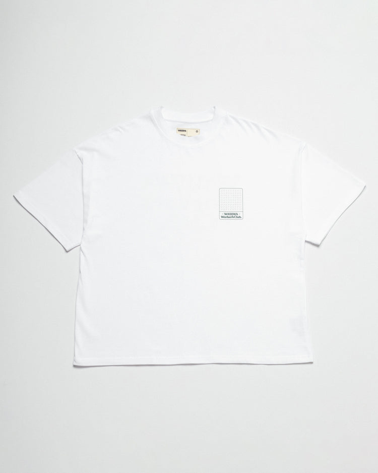 Introducing the Worker's Box T-Shirt in White - where craftsmanship meets solidarity. This heavyweight piece features premium Portuguese organic jersey, cut in a contemporary boxy fit. The minimalist design showcases our signature Worker's Club grid on the chest, while the bold back print makes a statement about belonging to something bigger.