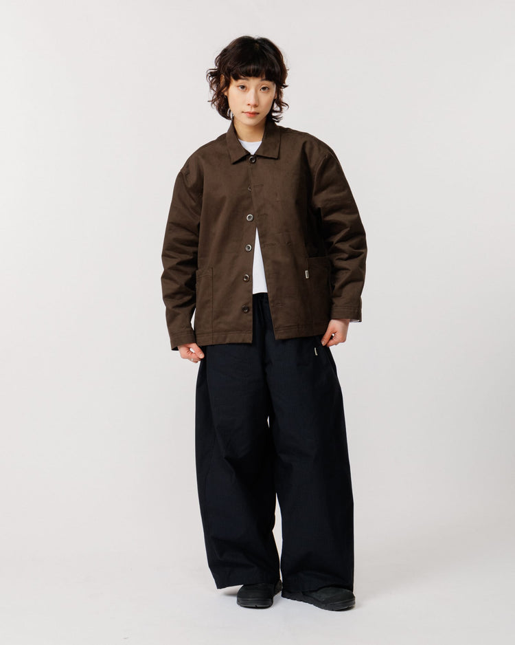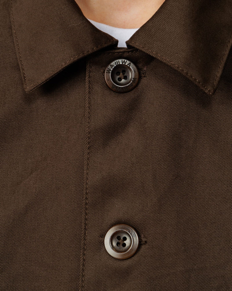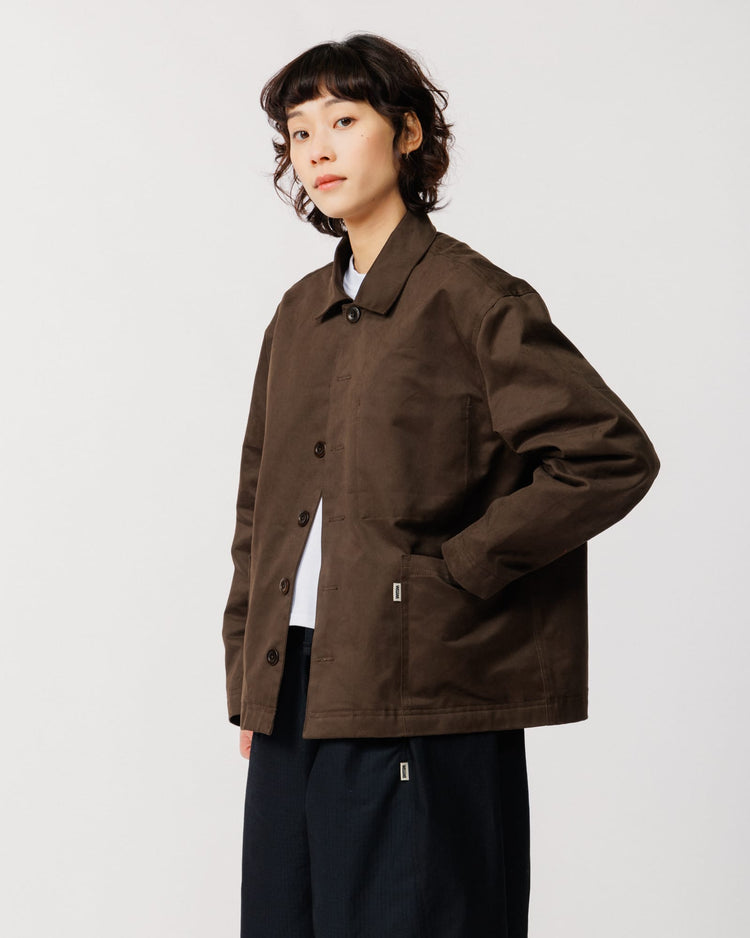A reworked take on our popular Mill Jacket. The new Mill Overshirt in brown keeps everything that worked - relaxed silhouette, workwear-rooted construction - and builds on it. The fit is slightly more relaxed and cropped, the fabric heavier at 310gsm, and an internal stash pocket adds extra utility where you need it most.