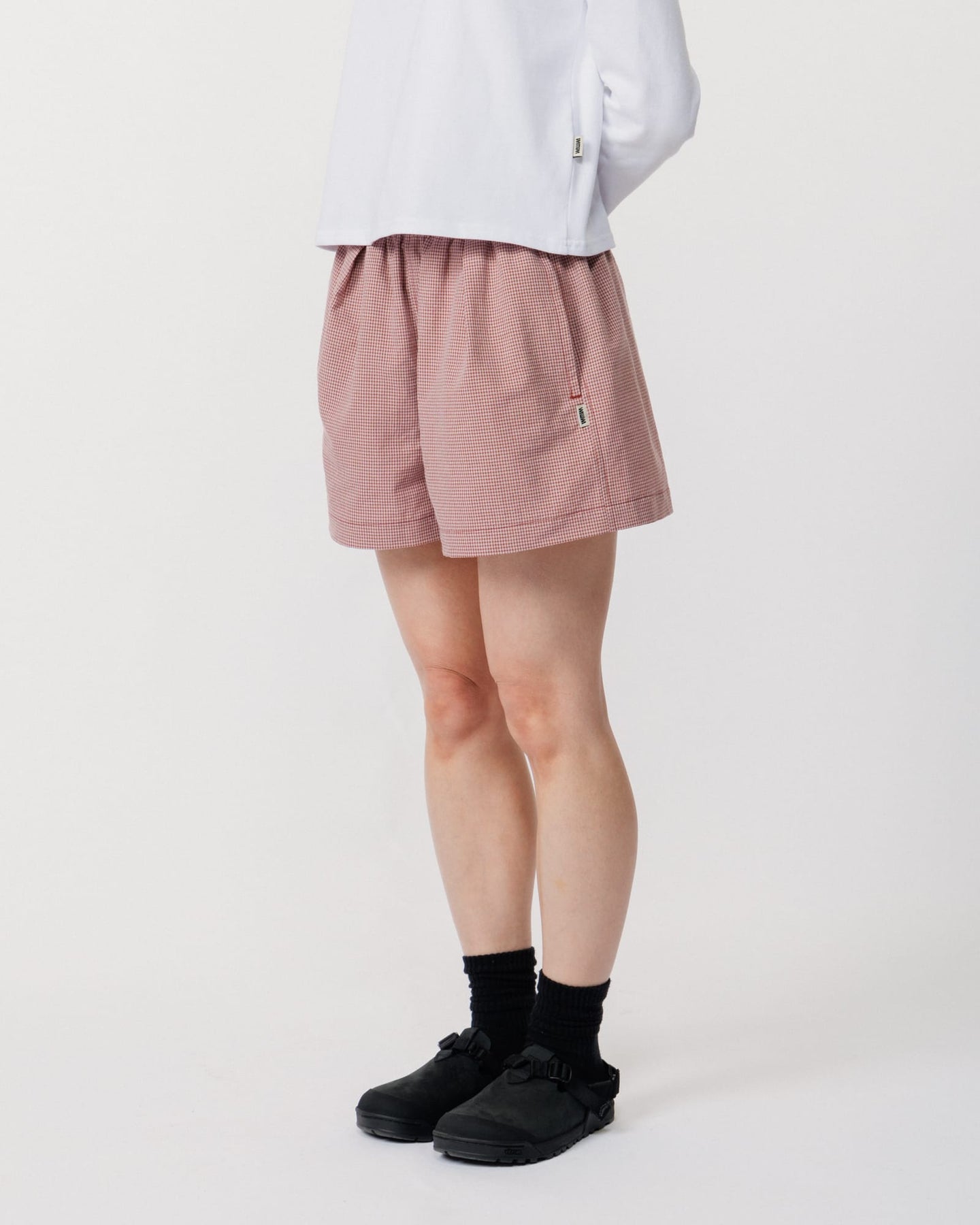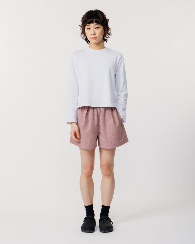 Introducing the Patti Short in red/pink - cut from a lightweight checked fabric in a organic cotton and recycled polyester blend, these are the shorts you'll reach for whether you're navigating the city, heading to the beach, or out on the hills.