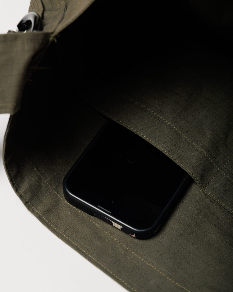 Reinforced bar-tacked loops and included S-clips let you customise your carry - from keys to bottles to on-the-go essentials. A snap-fastened top keeps everything secure, while the internal pocket makes it easy to stay organised. The self-lined construction ensures lasting durability without extra bulk, and the thick strap sits comfortably on your shoulder, whether you’re navigating the city or heading outdoors.
