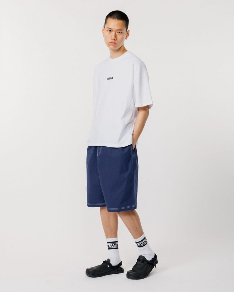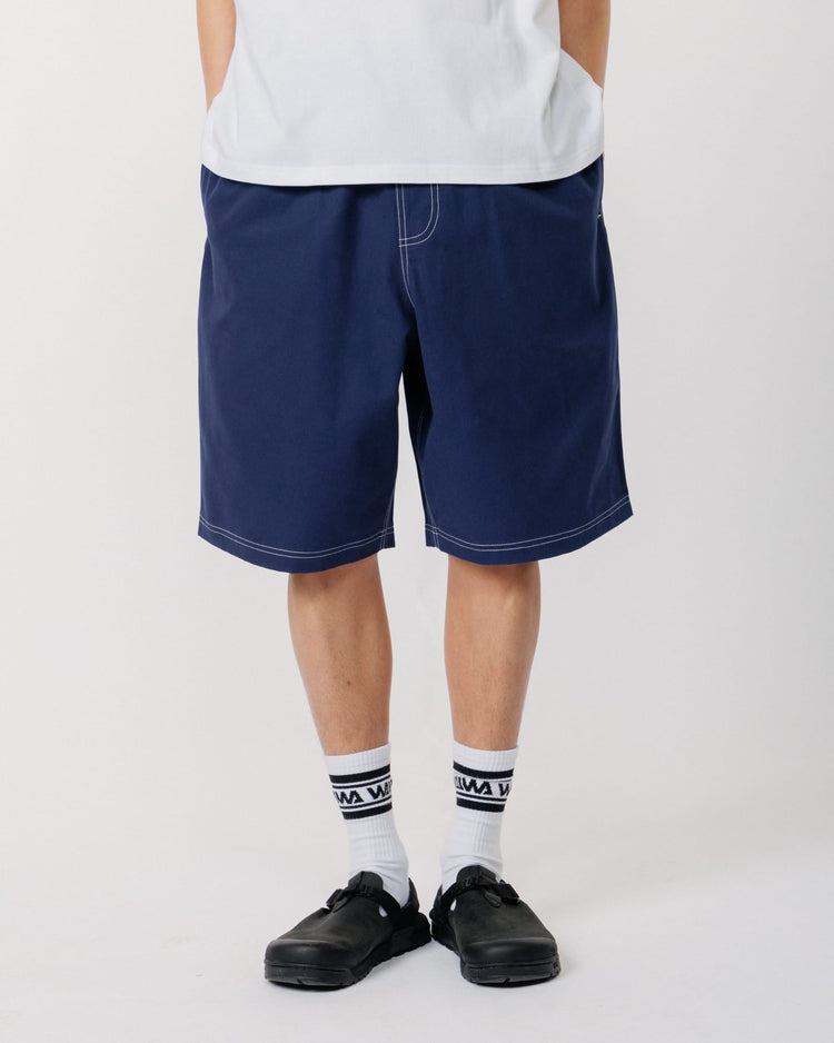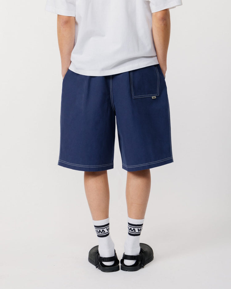 Our Zama Short gets a sharp upgrade. Same relaxed fit and organic cotton twill you know, now cut in navy canvas with white contrast stitching that gives them a clean, considered edge.