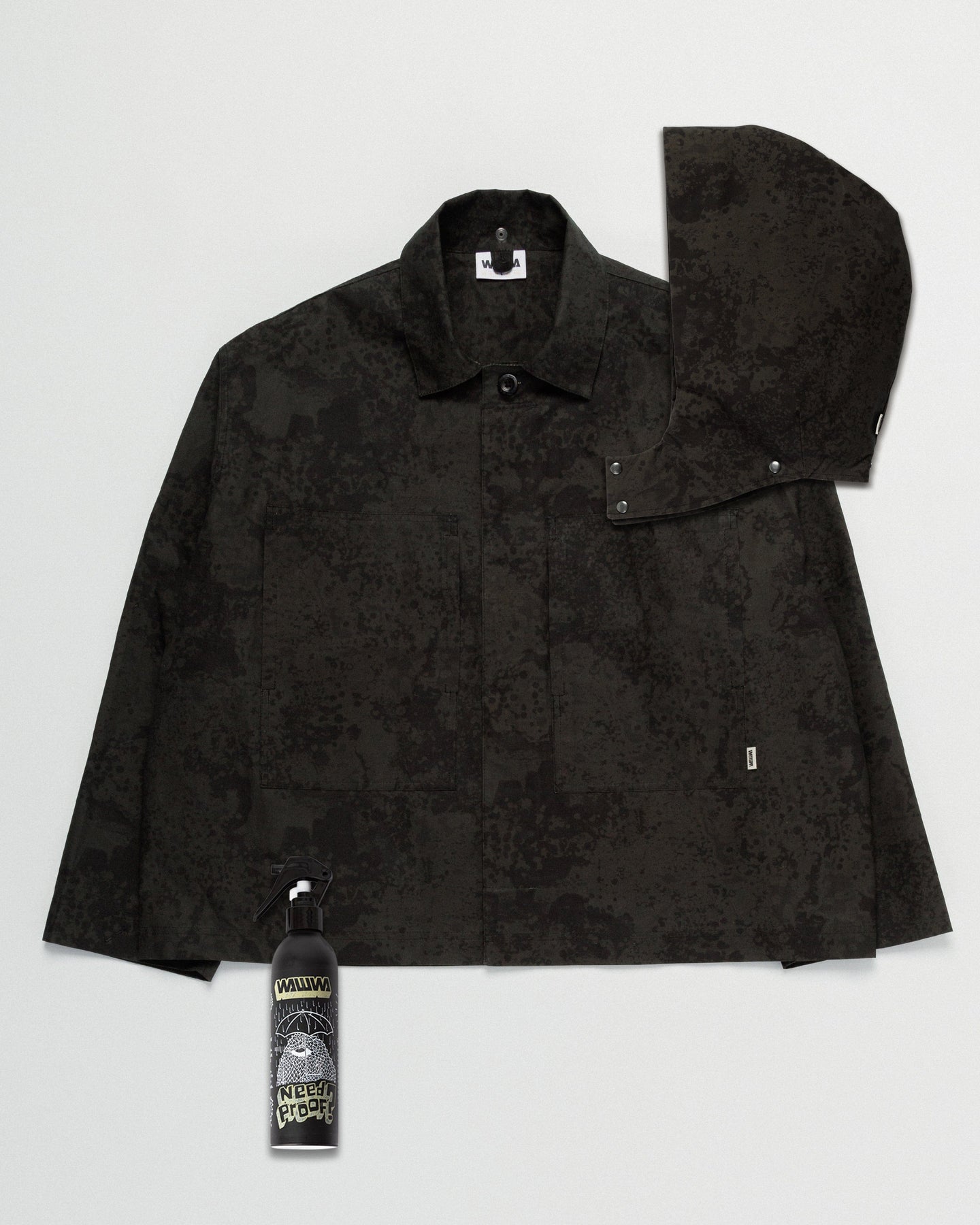 The Nell Overshirt & Hood Set in ltd edition Black Ink is the ultimate WAWWA outerwear package - bringing together the versatile Nell Overshirt, its modular detachable hood, and Reproofing Spray to keep your gear performing at its best.