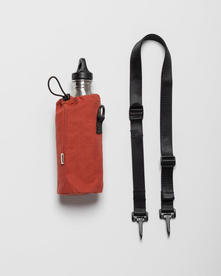 Introducing our Water Bottle Holder in Biscuit Orange, a sustainable and stylish way to carry your hydration on-the-go. Made from organic waxed ripstop cotton, this holder is both durable and eco-friendly.